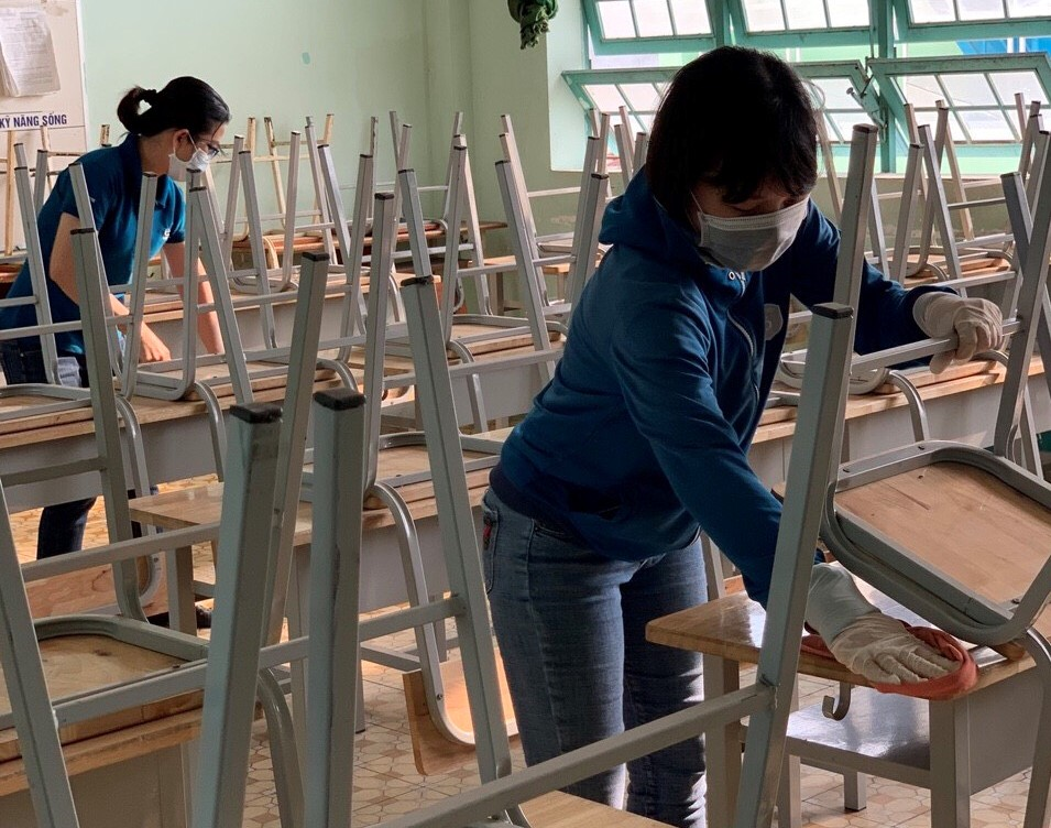 Trong tình hình dịch COVID-19 đang có diễn biến phức tạp trên toàn thế giới, nguy cơ lây nhiễm cao, để cụ thể hóa các nội dung, biện pháp phòng, chống, hạn chế thấp nhất sự lây lan dịch bệnh, đảm bảo sức khỏe cho học sinh sinh cũng như đội ngũ nhà trường, nhà trường đã triển khai công tác vệ sinh và khử khuẩn lớp học, phòng làm việc cũng như toàn bộ khuôn viên nhà trường.